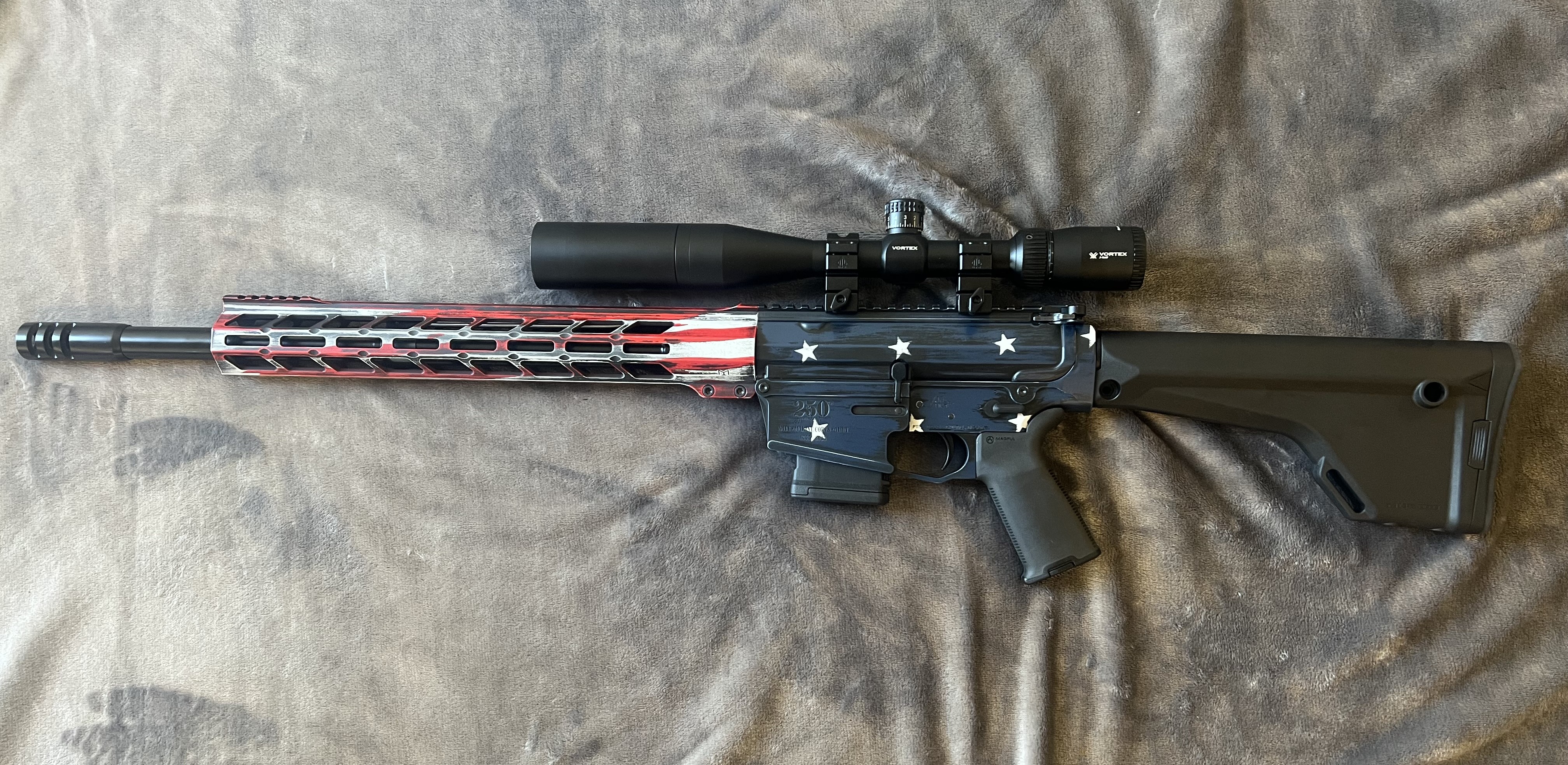 A2 flat top upper; 15" full floating keymod or M-Lok handrail